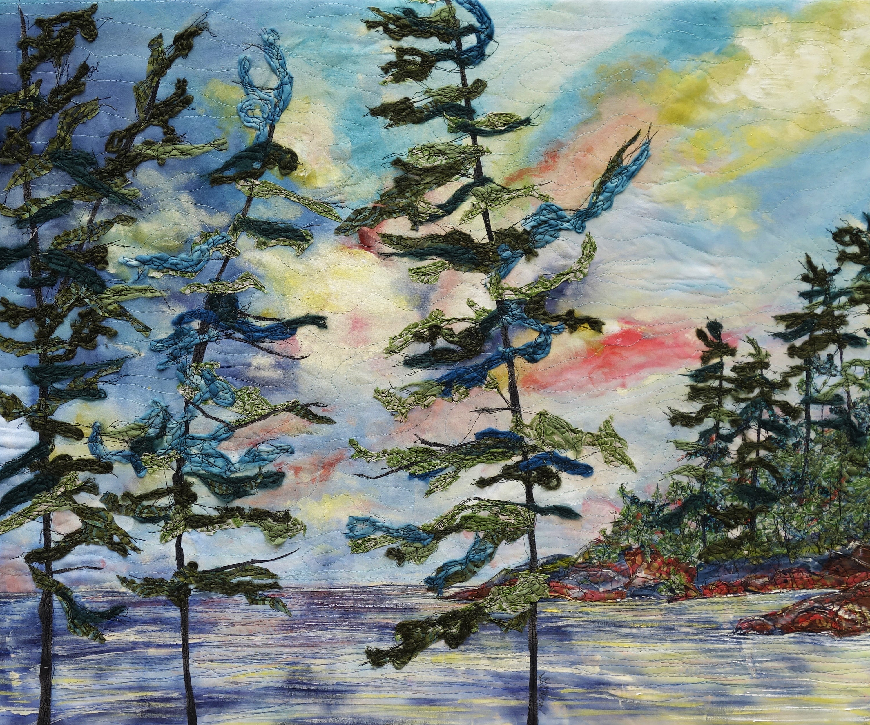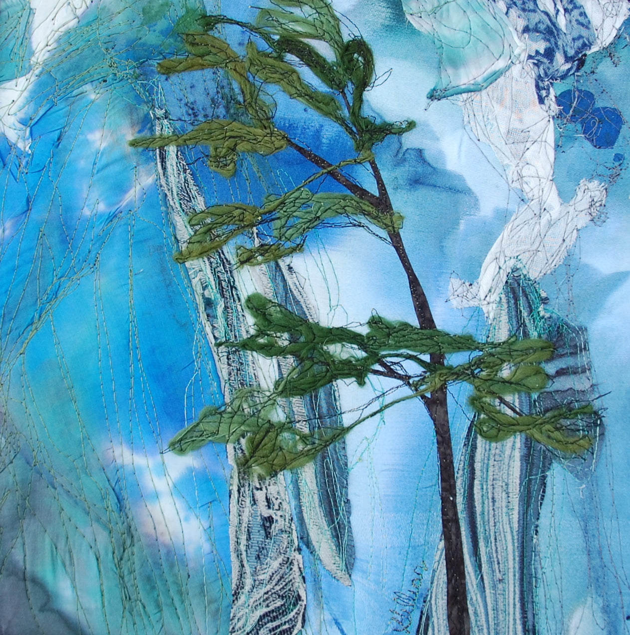 Textile art with up-cycled fibres and a merino wool tree **This piece can be hung or displayed on a hard surface**
