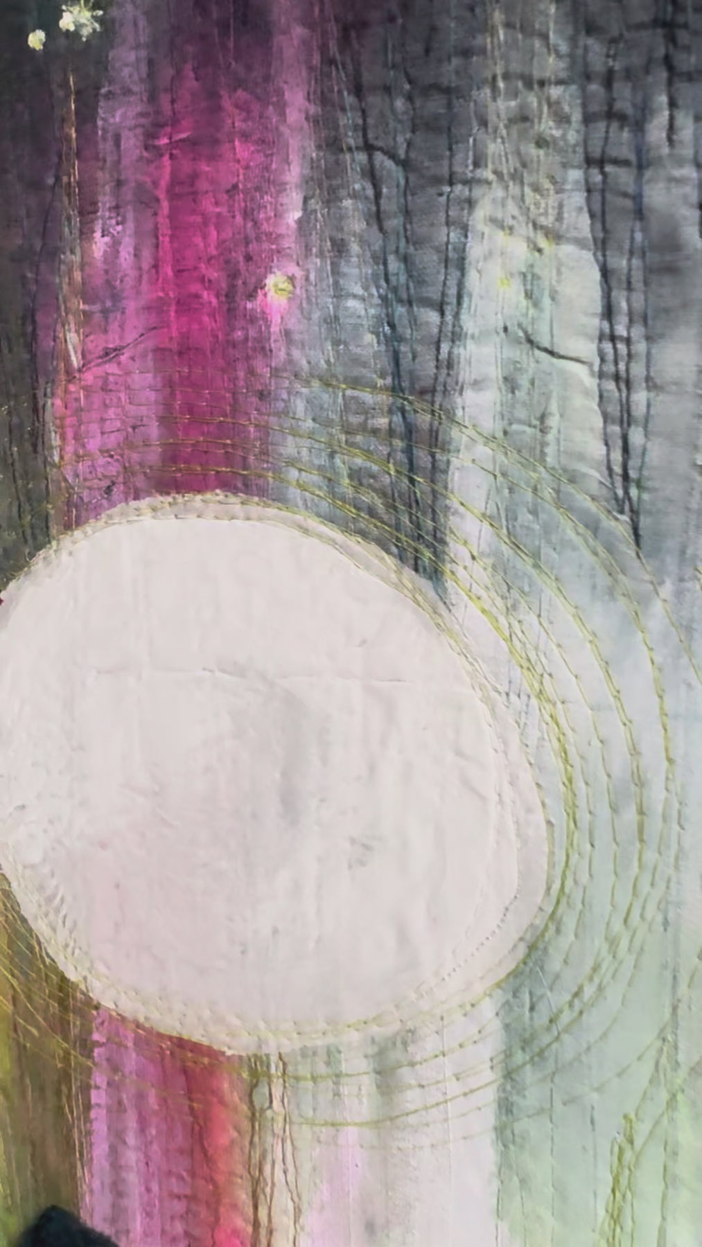 Medium: Textile with wool; hand dyed cotton and acrylic paint