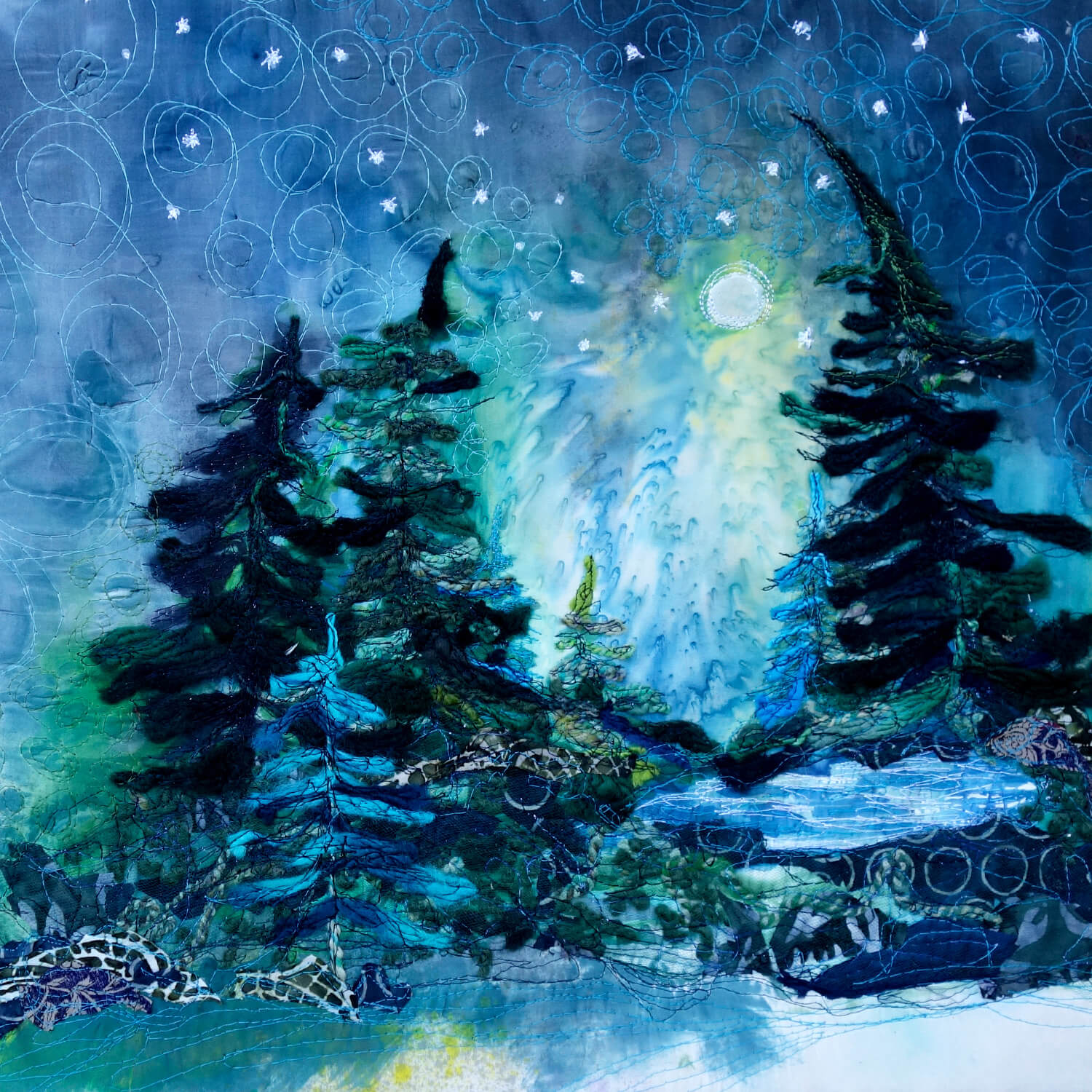 Medium: Textile with wool; hand dyed silk and acrylic paint