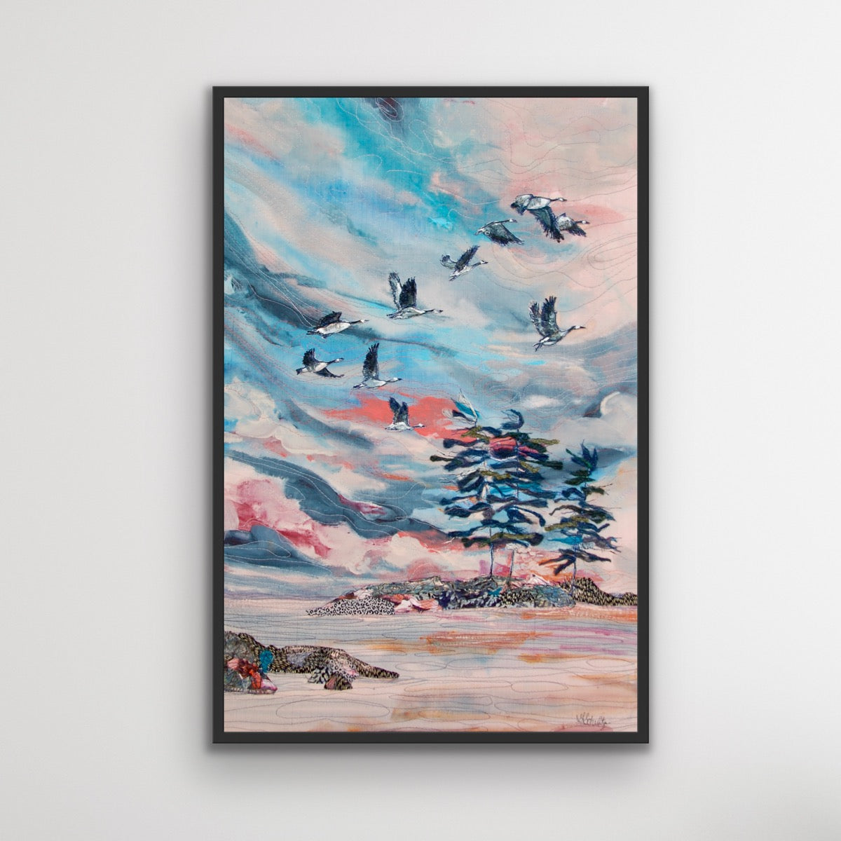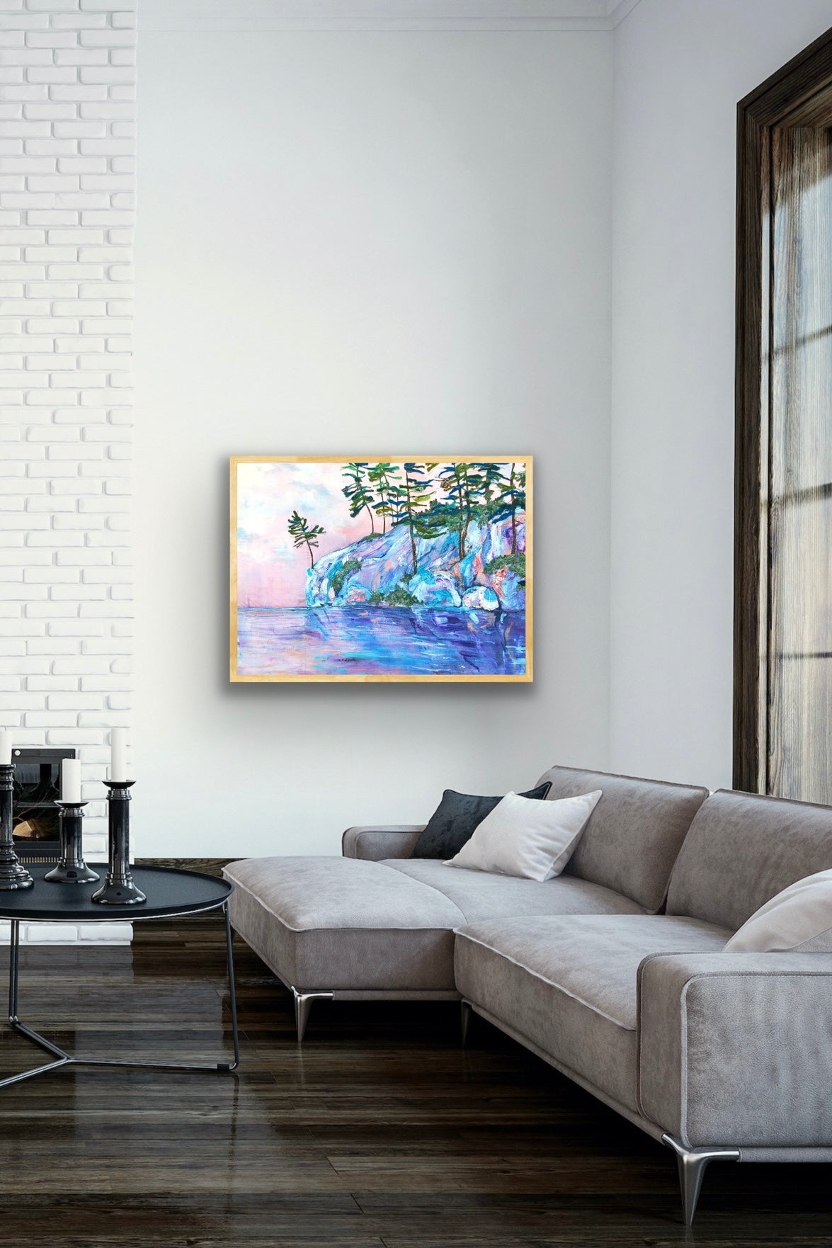 The shores of Georgian Bay invite viewers to lose themselves in the tranquil interplay of light and color. It is a meditation on the harmony found in nature, a visual symphony where the reflections in the water mirror the quiet elegance of the trees. This piece embodies a moment of pure serenity, where the natural world reveals its most graceful self, encouraging the viewer to pause.“May a profound sense of calm washes over you."