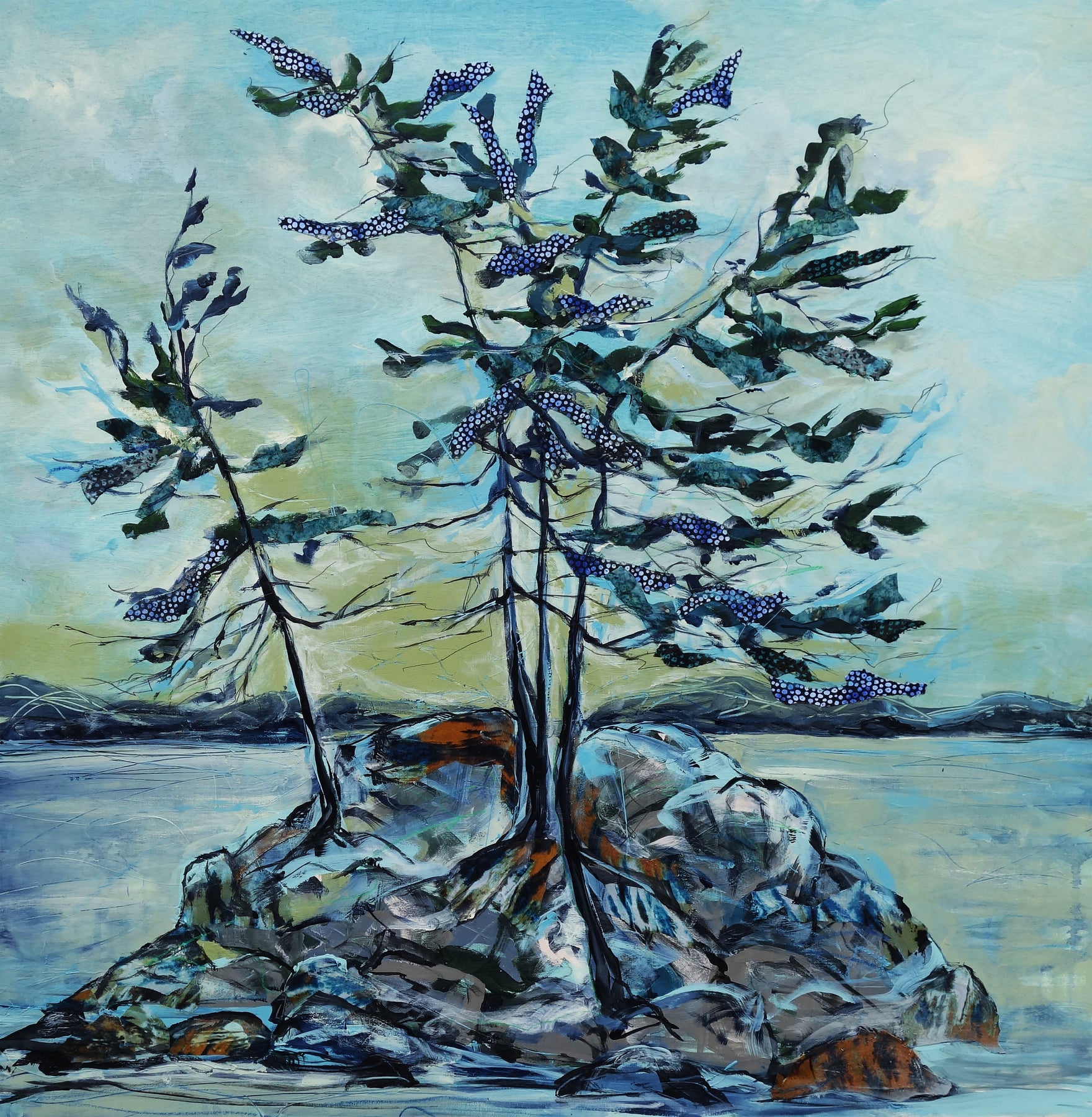 Mixed media on wood board with a high gloss epoxy finish